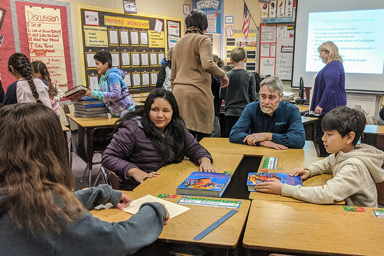 The lessons they give align with school curriculum and build a positive foundation for STEM subjects in fun and engaging ways. The first visit NWESI went on was a visit to an elementary school in the Tigard-Tualatin School District, and involved a short presentation followed by a practical applications experiment. It involved building a suspension bridge with a single piece of paper and slowly loading marbles onto it to see how much it could hold.